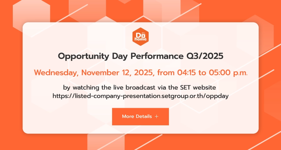 Dohome Public Company Limited is determined to best of retail, wholesale business and services relating to construction materials and home decoration products full circle under thinking of under the concept “Complete, Cheap and Good…at DOHOME”. By focusing on presentation of variouns product, quality and chaep. At present, the Company has a plan to continually expand its investment to potential provinces in order to support the increasing purchasing power of people and urbanization.